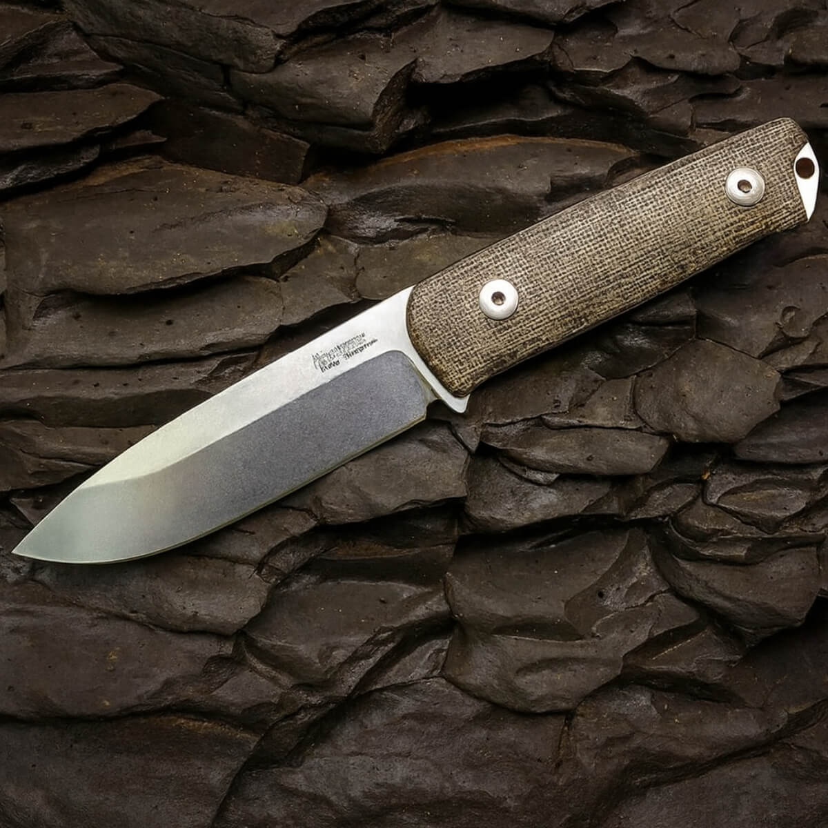 The B41 is equipped with a high quality stone-washed Sleipner steel blade which is ideal for carving wood. The milled natural canvas micarta handle offers excellent grip.