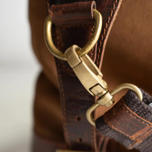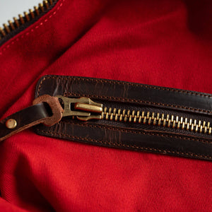 Full-grain leather straps and a reinforced base provide structure and durability, while solid brass hardware ensures the details endure as well as the design. The heavy-duty YKK zippers glide smoothly, the hand-stitched handles are built to bear the weight, and the adjustable shoulder strap makes for comfortable carry.