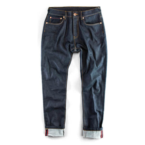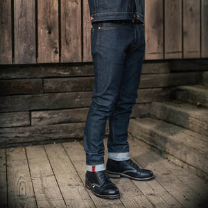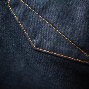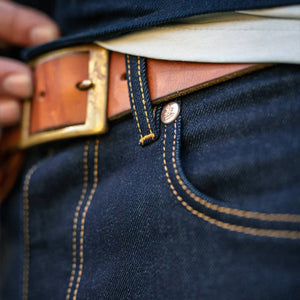 This denim option is designed to fade with high contrast over time, developing beautiful, natural highs and lows that tell the story of your wear. We recommend holding off washing them for at least six months to allow the raw denim to develop its full character. After washing, the jeans may feel tighter initially but will quickly relax back into form as you wear them.